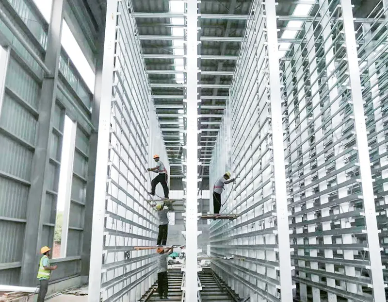 Dess arbetsprincip är att cementet i betongen reagerar med vatten för att producera hydratiseringsprodukter, vilket gradvis härdar betongen. Curingrummet accelererar och fortsätter cementhydreringsreaktionen genom att exakt kontrollera temperaturen och fuktigheten. När temperaturen stiger inom ett visst intervall accelererar reaktionshastigheten; Tillräcklig luftfuktighet kan säkerställa kontinuerlig hydrering av cement och undvika hydratiseringsstoppet orsakat av för tidig indunstning av vatten, vilket påverkar styrkan och kvaliteten på tegelkroppen.
